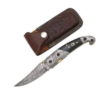 Real damascus folding knife comes with leather sheath to protect from stains and sharp blade. Folding is also a EDC for different purposes.This knife detailed as; two sharp damascus steel blades and a durable stag antler horn handle.